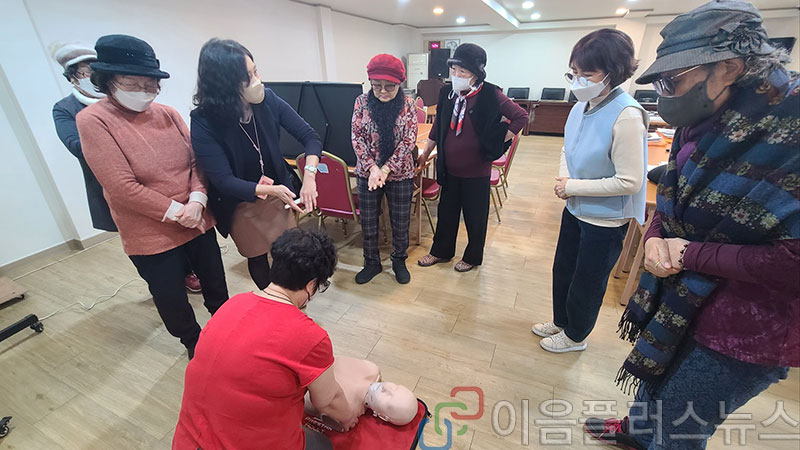 지난 27일 오후, 시루작은도서관 소속 시니어 약초학습동아리 '약시루' 회원을 대상으로 심폐소생술 교육이 있었다.