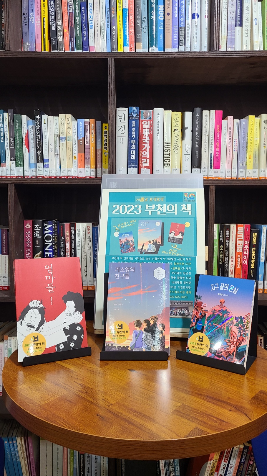 시루작은도서관에서는 오는 11월까지 약 300일간 시민이 함께 읽는 “2023부천의 책-일반부문<지구 끝의 온실>, 아동부문<기소영의 친구들>, 만화부문 <엄마들>을 전시하고 있다.