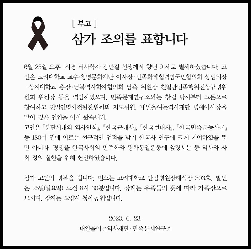 홈칼럼·기고궂긴소식역사학자 강만길 선생 별세기사승인 23-06-24 15:14- 작게+ 크게 공유 공유하기 닫기 아래의 URL을 길게 누르면 복사하실수 있습니다. http://eumplusnews.com/m/view.asp?idx=2002 icon 페이스북 icon 트위터 icon 카스 icon 밴드 icon URL복사 default_news_ad1 <민족문제연구소 제공> 김병구(eumplusnews@gmail.com)<저작권자 이음플러스뉴스 무단전재 및 재배포금지>
