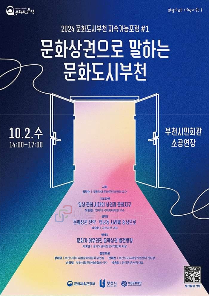 지난 10월2일 부천시민회관에서 부천문화재단이 주관하는 2024문화도시부천 지속 가능포럼#1이 열렸다.