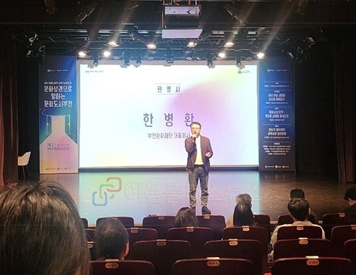 먼저 부천문화재단 한병환대표는 환영사를 통해, 부천이 문화도시를 선포하고 30여년이 지났는데, 과연 부천을 대표하는 '문화'는 무엇인가?라는 고민에서 이 포럼을 준비하게 되었다고 밝혔다. 우리가 문화도시부천이라고 익숙하게 표현하지만 30여년동안 자연발생적으로 조성되는 문화구역은 있는지에 대한 고민에서 시작되었다고 했다.