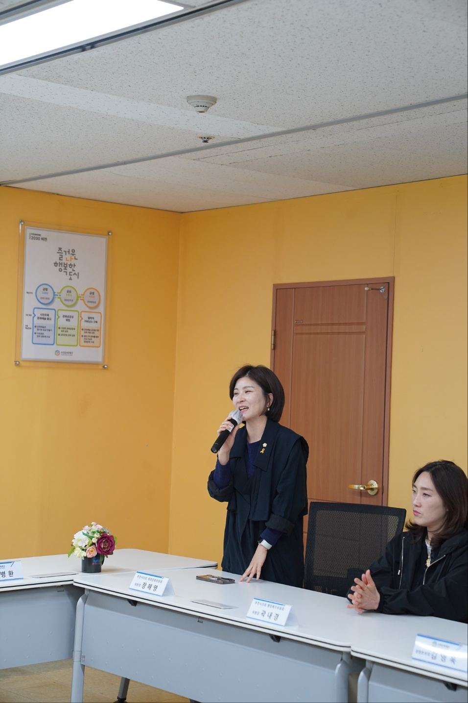 이밖에 참석해주신 장해영시의원은 ”노사 공동의 목표“를 설정한 것에 의미를 부여하며 책임을 같이 나누겠다는 것에 감동받았다고 축하해주었다. 이외 정문성 부천시청노조위원장은 상생,협력이란, 같이 살아있다는 것이고 이는 마음과 마음이 이어짐 같이 보람과 책임을 나누고, 마음과 마음을 모으는 것이 부천 시민을 위한 길임을 강조햇다.