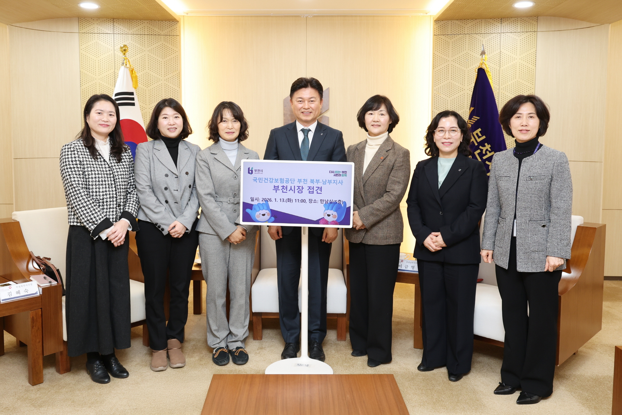 부천시는 지난 13일 부천시청에서 국민건강보험공단 부천북부지사, 남부지사와 신년 접견을 진행하고, 초고령사회 대응을 위한 지역 통합돌봄 협력사업의 지속 확대와 내실화 방안을 논의했다.