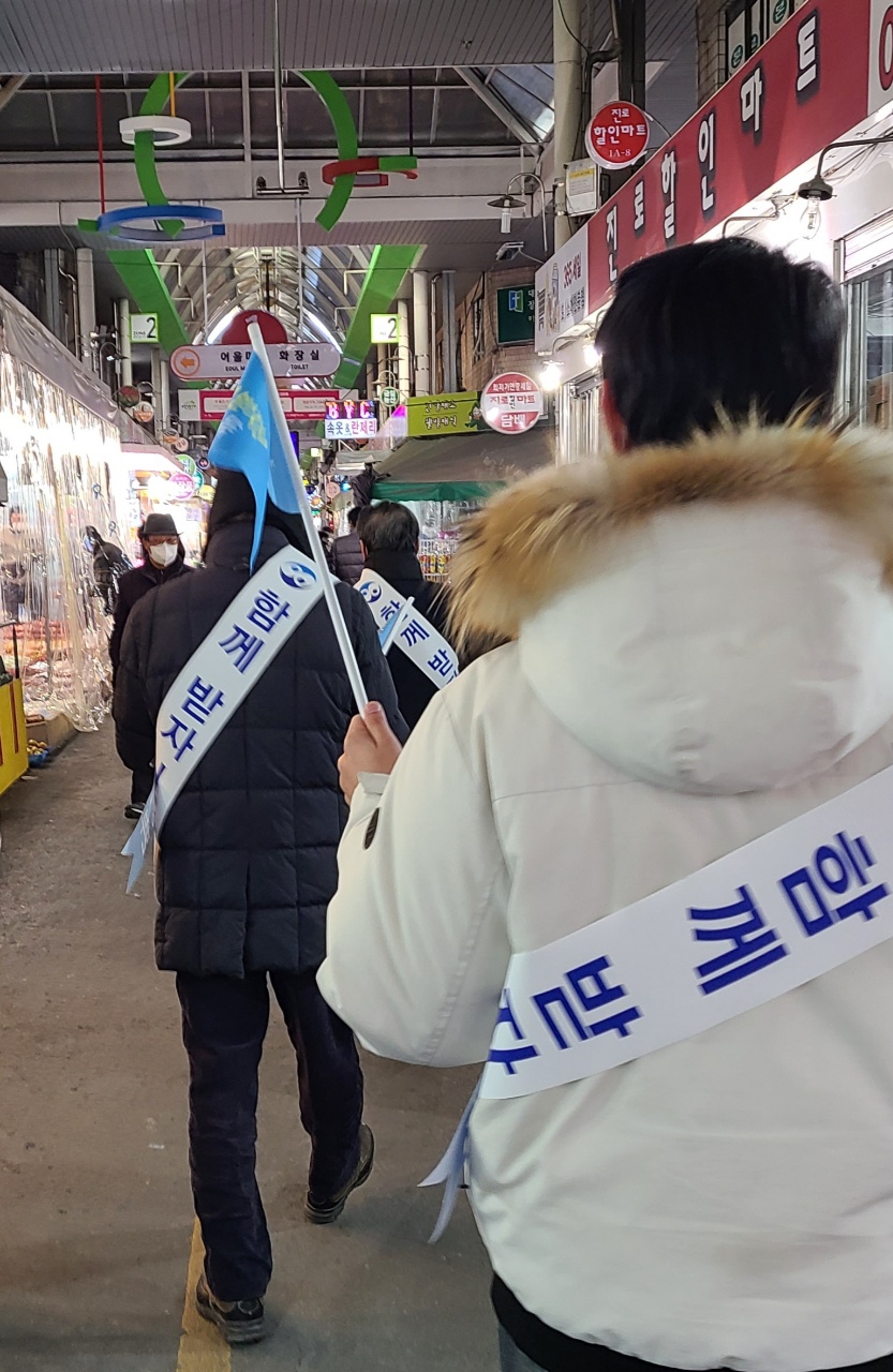 25일 성탄절에도 영하 10도 추운 날씨에 중동역과 상동시장을 돌며 기본소득을 알리는 거리캠페인을 펼쳤다.