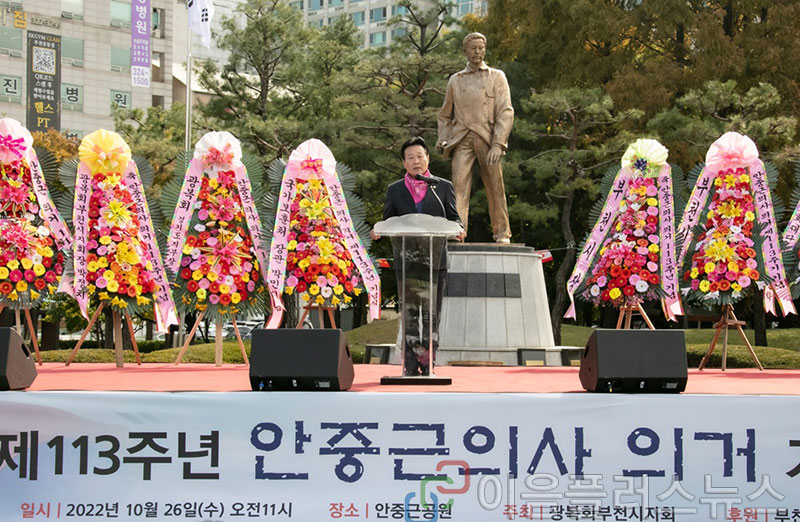 ÃÖ¼º¿î ÀÇÀåÀº “¿À´Ã ÀÌ ÀÚ¸®°¡ ¾ÈÁß±Ù ÀÇ»çÀÇ ¾Ö±¹Á¤½ÅÀ» ±â¾ïÇÏ°í ¹ÎÁ·ÀÚÁ¸ÀÇ Èñ¸ÁÂù ¹Ì·¡¸¦ ´õ¿í Ȱ¦ ¿©´Â °è±â°¡ µÇ±â¸¦ ¹Ù¶õ´Ù”¶ó¸ç “¿ì¸® ÀÇȸ¿¡¼µµ Àڶ󳪴 ¼¼´ë°¡ ¾ÈÁß±Ù ÀÇ»çÀÇ ¼þ°íÇÑ Á¤½ÅÀ» º»¹Þ¾Æ °Ç°È÷ ¼ºÀåÇÒ ¼ö ÀÖµµ·Ï ¾ÈÁß±Ù ÀÇ»ç ¼±¾ç »ç¾÷¿¡ °ü½É°ú Áö¿øÀ» ¾Æ³¢Áö ¾Ê°Ú´Ù”¶ó°í ¸»Çß´Ù.
