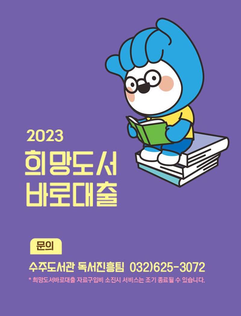 ÀÚ¼¼ÇÑ »çÇ×Àº ¼öÁÖµµ¼­°ü µ¶¼­ÁøÈïÆÀ 032)625-3072À¸·Î ¹®ÀÇÇÏ½Ã¸é µÈ´Ù.
