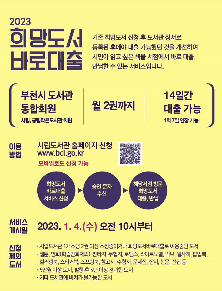 2023³âºÎÅÍ´Â ±âÁ¸ÀÇ 10±ºµ¥ ¼­Á¡ ¿Ü¿¡ Ãß°¡·Î 2°÷('±ÛÇѽºÇ¬', 'ºû³ª´Â Ä£±¸µé')¿¡¼­µµ "Èñ¸Áµµ¼­¹Ù·Î´ëÃâ" ¼­ºñ½º ÀÌ¿ëÀÌ °¡´ÉÇÏ´Ù.
