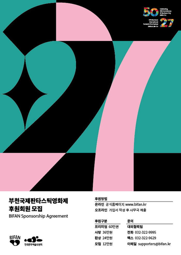 BIFAN, 13ÀϺÎÅÍ Á¦27ȸ ºÎõ±¹Á¦ÆÇŸ½ºÆ½¿µÈ­Á¦ ÈÄ¿øÈ¸¿ø ¸ðÁý