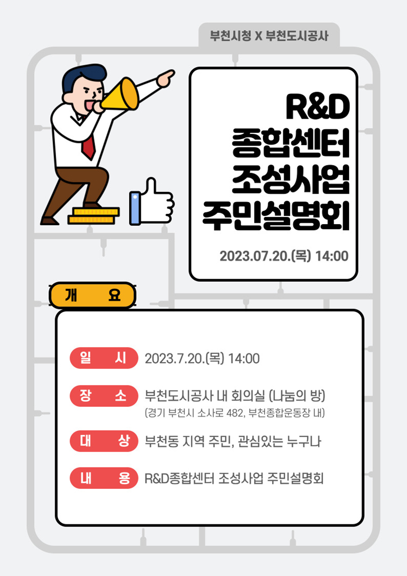 ºÎõ½Ã(½ÃÀå Á¶¿ëÀÍ)´Â ¿À´Â 7¿ù 20ÀÏ ¿ÀÈÄ 2½Ã ºÎõµµ½Ã°ø»ç 1Ãþ ³ª´®Àǹ濡¼­ ‘ÃáÀÇ °æÁ¦±â¹ÝÇü ºÎõ Çãºê·º½º’ÀÇ ÀÏȯÀ¸·Î ÃßÁøÇÏ´Â ‘R&DÁ¾ÇÕ¼¾ÅÍ Á¶¼º»ç¾÷’ Áֹμ³¸íȸ¸¦ °³ÃÖÇÑ´Ù.