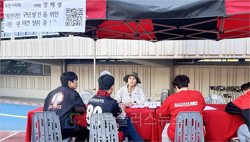 À̳¯Àº ºÎõFC1995¿Í Àü³²µå·¡°ïÁîÀÇ ¸Â´ë°áÀÌ ¿¹Á¤µÈ ³¯·Î, ÀåÇØ¿µ ÀÇ¿øÀº °æ±â ½ÃÀÛ 2½Ã°£ Àü¿¡ µµÂøÇÏ¿© °æ±âÀåÀ» ãÀº ½Ã¹Îµé¿¡°Ô ½Ã¹Î±¸´Ü ¹ßÀüÀ» À§ÇØ ÇÊ¿äÇÑ °ÍÀÌ ¹«¾ùÀÎÁö Á÷Á¢ ¹°¾ú°í, ¿Â¶óÀÎÀ¸·Îµµ ÀǰßÀ» ¼ö·ÅÇß´Ù.
