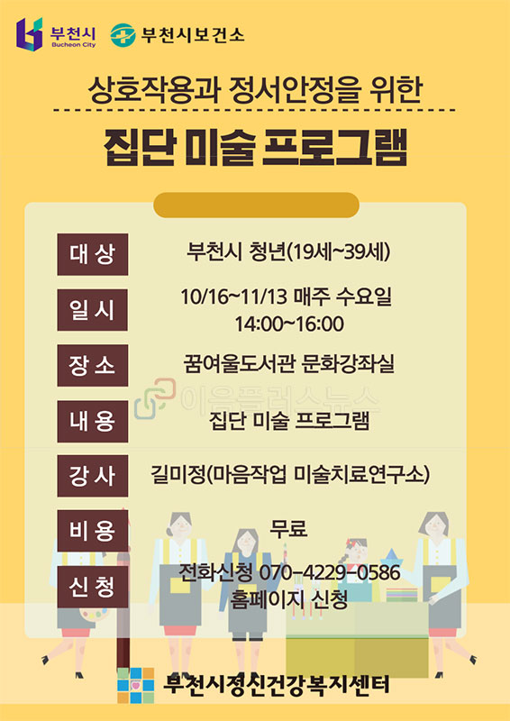 ºÎõ½Ã(½ÃÀå Á¶¿ëÀÍ)¿Í ºÎõ½ÃÁ¤½Å°Ç°º¹Áö¼¾ÅÍ(¼¾ÅÍÀå ±è½Å°â)´Â û³âµéÀÇ ÀÚÁ¸°¨ ÁõÁøÀ» ¸ñÇ¥·Î ¿À´Â 10¿ù 16ÀϺÎÅÍ 11¿ù 13ÀϱîÁö ‘û³â Áý´Ü ¹Ì¼ú ÇÁ·Î±×·¥’À» ¿î¿µÇÑ´Ù.