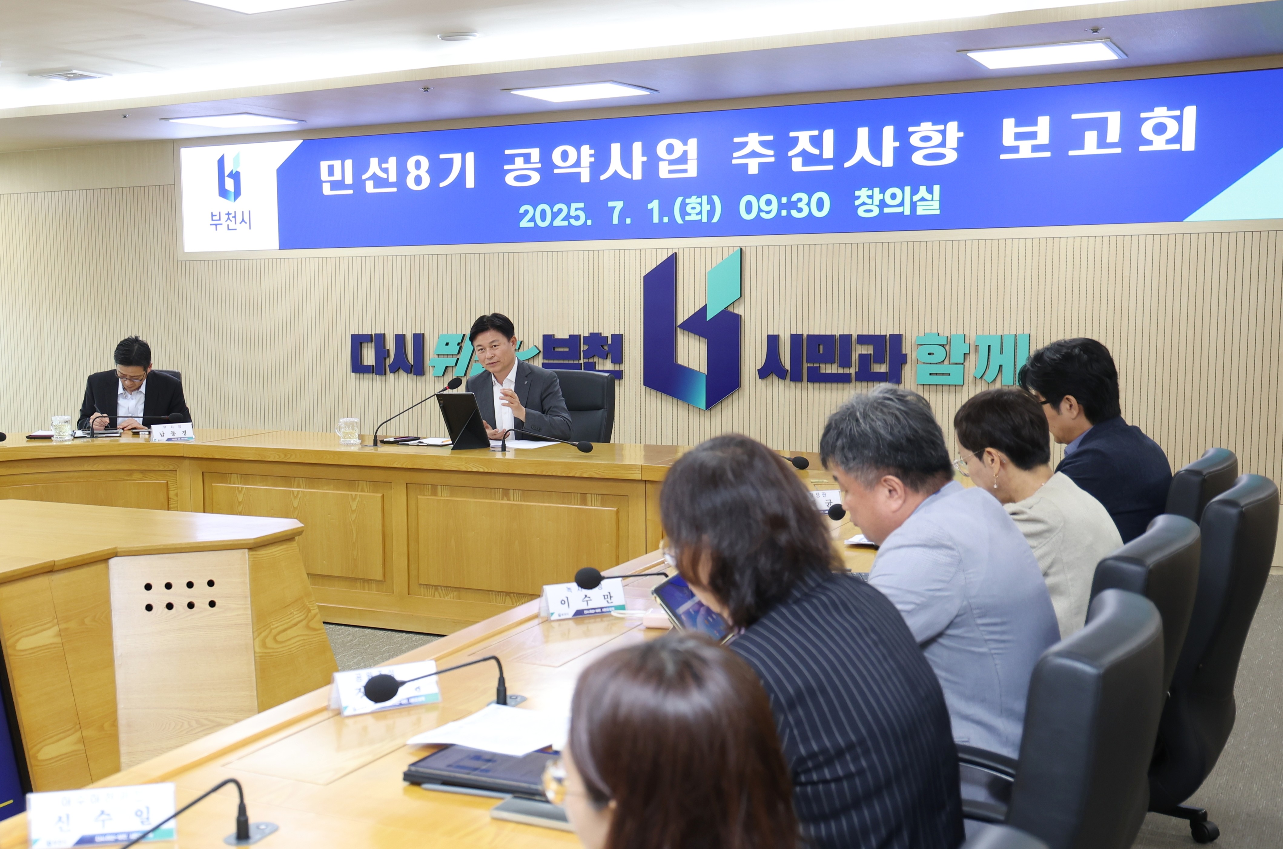 ½Ãû¿¡ µµÂøÇÑ Á¶ ½ÃÀåÀº ¹Î¼± 8±â °ø¾à»ç¾÷ ÃßÁø»óȲ º¸°íȸ¿¡ Âü¼®ÇØ ºÎ¼­º° °ø¾à ÀÌÇà ÇöȲÀ» Á¡°ËÇß´Ù. ÃßÁøÀÌ ´õµò »ç¾÷¿¡ ´ëÇØ¼­´Â ¿øÀÎÀ» ÇÔ²² °í¹ÎÇÏ¸ç °³¼± ¹æ¾ÈÀ» ³íÀÇÇß´Ù. ºÎõ½Ã´Â Çѱ¹¸Å´ÏÆä½ºÅä½Çõº»ºÎ¿¡¼­ ½Ç½ÃÇÏ´Â °ø¾àÀÌÇà Æò°¡¿¡¼­ 4³â ¿¬¼Ó ÃÖ¿ì¼ö µî±ÞÀ» ¹ÞÀº ¹Ù ÀÖ´Ù.