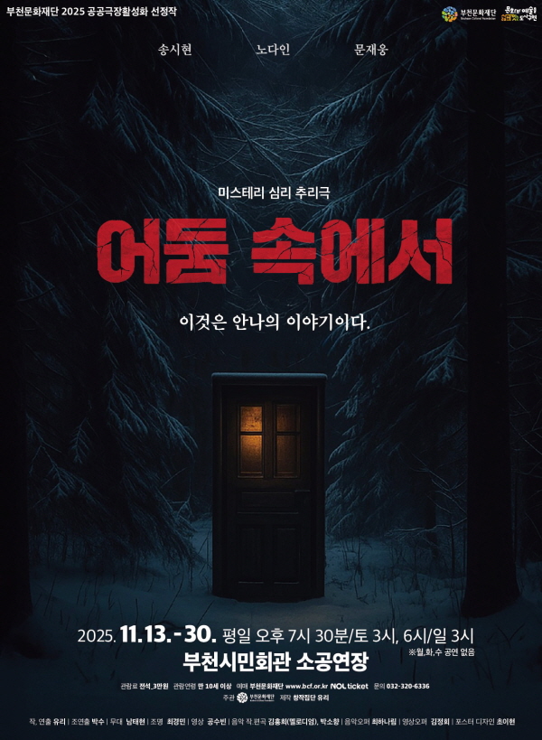 2025³â ºÎõ¹®È­Àç´Ü °ø°ø±ØÀå Ȱ¼ºÈ­ »ç¾÷¿¡ ¼±Á¤µÈ âÀÛÁý´Ü ‘À¯¸®’°¡ ¿À´Â 11¿ù 13ÀÏ(¸ñ)ºÎÅÍ 30ÀÏ(ÀÏ)±îÁö ºÎõ½Ã¹Îȸ°ü ¼Ò°ø¿¬Àå¿¡¼­ ¹Ì½ºÅ͸® ½É¸® Ã߸®±Ø ¡´¾îµÒ ¼Ó¿¡¼­¡µ(ºÎÁ¦: À̰ÍÀº ¾È³ªÀÇ À̾߱âÀÌ´Ù)¸¦ ¼±º¸ÀδÙ.