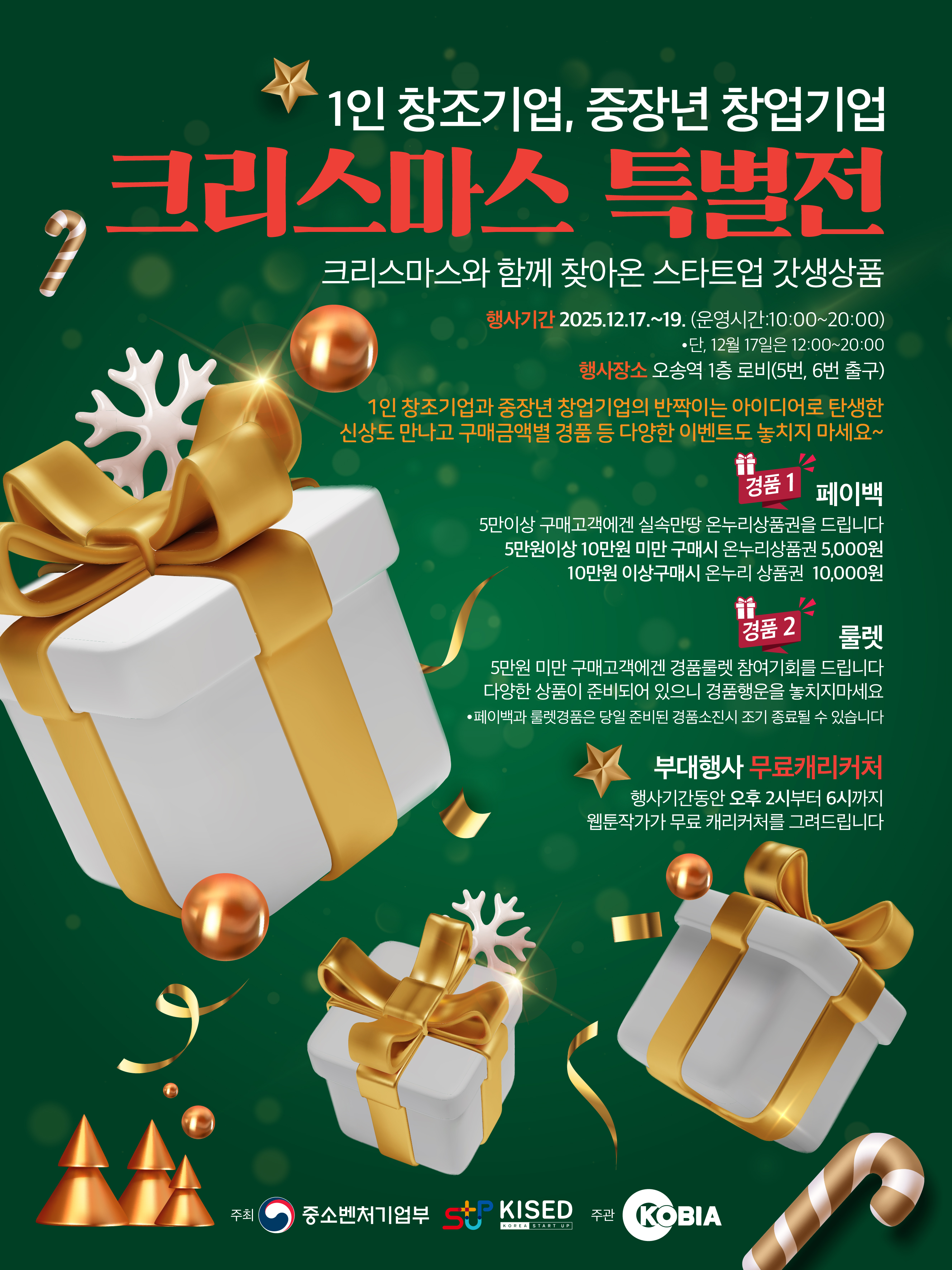 À¥Å÷Æ¯È 1ÀΠâÁ¶±â¾÷Áö¿ø¼¾ÅÍ, Áö¿ªÃ¢¾÷ƯÈÁö¿ø»ç¾÷ ¼º°úÇöÀå¿¡¼ °æÀï·Â ÀÔÁõ12.17.~19. KTX ¿À¼Û¿ª ¡¸1ÀΠâÁ¶±â¾÷ ¡¤ ÁßÀå³â â¾÷±â¾÷ Å©¸®½º¸¶½º Ưº°Àü¡¹¿·ÁÇѱ¹¸¸È¿µ»óÁøÈï¿ø(¿øÀå ¹éÁ¾ÈÆ)ÀÌ ¿î¿µÇÏ´Â À¥Å÷Æ¯È 1ÀΠâÁ¶±â¾÷ Áö¿ø¼¾ÅÍ ¼Ò¼Ó ±â¾÷µéÀÌ Âü¿©ÇÑ <1ÀΠâÁ¶±â¾÷·ÁßÀå³â â¾÷±â¾÷ Å©¸®½º¸¶½º Ưº°Àü>ÀÌ Áö³ 12¿ù 17ÀϺÎÅÍ 19ÀϱîÁö ¿À¼Û¿ª 1Ãþ ·Îºñ¿¡¼ ¼ºÈ²¸®¿¡ °³ÃֵƴÙ.