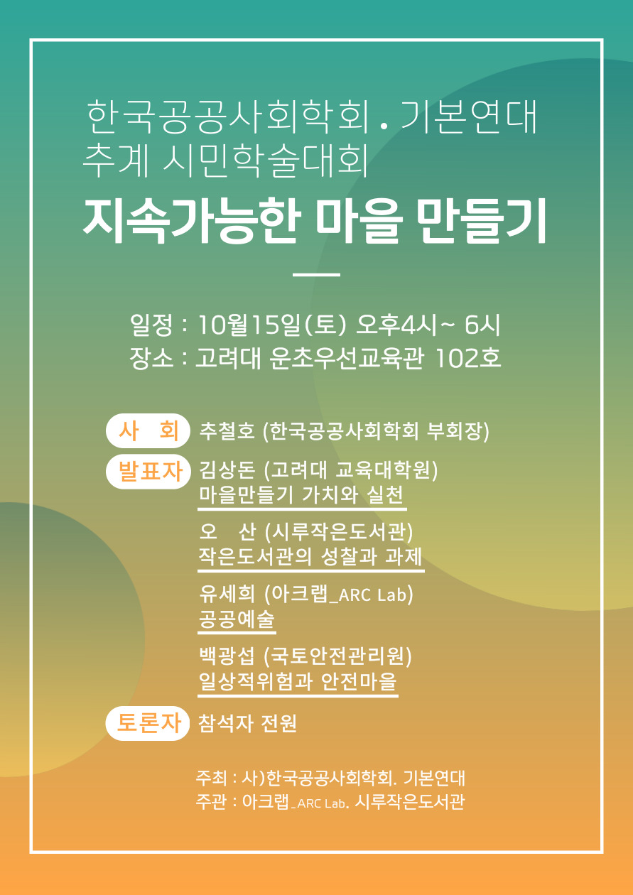 Çѱ¹°ø°ø»çȸÇÐȸ, ±âº»¿¬´ë Ãß°è ½Ã¹ÎÇмú´ëȸ10¿ù 15ÀÏ(Åä) ¿ÀÈÄ 4½Ã~6½Ã°í·Á´ë ¿îÃʿ켱±³À°°ü 102È£Çѱ¹°ø°ø»çȸÇÐȸ·±âº»¿¬´ë