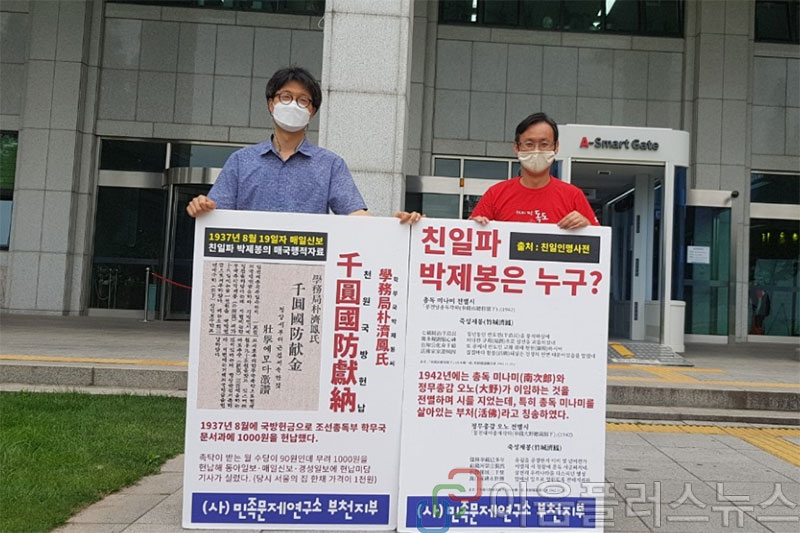 ¹ÎÁ·¹®Á¦¿¬±¸¼Ò ºÎõÁöºÎ°¡ <ºÎõ½Ã´Â Ä£ÀÏÆÄ ¹ÚÁ¦ºÀÀÇ Áý ¾Õ¿¡ ´ÜÁ˺ñ(Ó¨ñªÝø)¸¦ ¼¼¿ì°í, ½Ã¹ÎµéÀÇ ±³À°ÀÇ ÀåÀ¸·Î Ȱ¿ëÇÒ ¼ö ÀÖ´Â ´ëÃ¥À» ¸¶·ÃÇ϶ó>¶ó´Â ¼º¸í¼¸¦ ¹ßÇ¥ÇÑÁö 1³âÀÌ Áö³ª ºÎõÀÇ 3.1¿îµ¿ÀÎ <¼Ò»ç¸®µ¶¸³¸¸¼¼¿îµ¿(1919³â 3¿ù 24ÀÏ)>À» ¸ÂÀÌÇÏ¿© 3¿ù 23ÀÏ¿¡ ´Ù½Ã º¸µµÀڷḦ ¾ð·Ð»ç¿¡ ¹èÆ÷Çϰí <ºÎõ½Ã´Â Áö¿ª¿¡ ³²¾Æ ÀÖ´Â ÀÏÁ¦ÀÜÀç¿¡ ´ëÇØ Àü¼öÁ¶»çÇϰí, ½Ã¹ÎµéÀÌ ¾Ë ¼ö ÀÖµµ·Ï ¾È³»ÆÇÀ» ¼³Ä¡Ç϶ó>°í ¿ä±¸Çß´Ù.