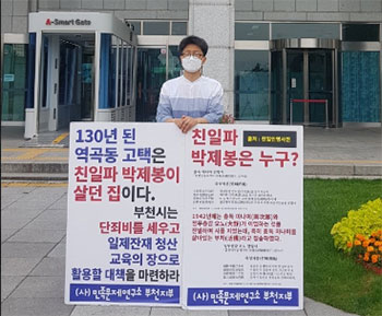 ¹Î¹®¿¬ ºÎõÁöºÎ´Â 2021³â 3¿ù 23ÀÏ¿¡ <ºÎõ½Ã´Â Ä£ÀÏÆÄ ¹ÚÁ¦ºÀÀÇ Áý ¾Õ¿¡ ´ÜÁ˺ñ(Ó¨ñªÝø)¸¦ ¼¼¿ì°í ½Ã¹ÎµéÀÇ ±³À°ÀÇ ÀåÀ¸·Î Ȱ¿ëÇÒ ¼ö ÀÖ´Â ´ëÃ¥À» ¸¶·ÃÇ϶ó!> ¶ó´Â ¼º¸í¼¸¦ ¹ßÇ¥ÇÏ¿´À¸¸ç, 5¿ù 10ÀÏ¿¡´Â <ºÎõ½Ã´Â Ä£ÀÏÆÄ ¹ÚÁ¦ºÀÀÇ ÁýÀÇ ÇâÅä¹®ÈÀç ÁöÁ¤½Ã Ä£ÀÏÀÜÀçÀÓÀ» ¸íÈ®È÷ ¹àÇô ´ÜÁ˺ñ¸¦ ¼¼¿ì°í, ÀϺΠÁö¿ª ¾ð·ÐÀº ¿ª»çÀû »ç½ÇÀ» ¿Ö°îÇÏÁö ¸»¶ó!>¶ó´Â ¼º¸í¼¸¦ ¹ßÇ¥ÇÏ¿´´Ù.