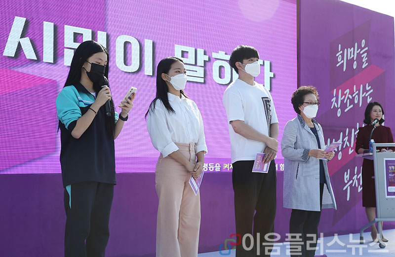 ƯÈ÷, û¼Ò³â, û³â³²¼º, ¿©¼ºÃ»³â, ³ëÀο©¼º µî °¢ ¼¼´ëº° ½Ã¹ÎµéÀÌ ¼ºÂ÷º°Àû ¾ð¾î¸¦ ¹Ù²ã°¡´Â ¹®È°¡ ÀÖ´Â ºÎõ, û³â¿©¼ºÀÇ Áú ÁÁÀº ÀÏÀÚ¸®°¡ ¸¹Àº ºÎõ, ¾ç¼ºÆòµîÇÑ ÀÏ»ýȰ±ÕÇüÀÌ °¡´ÉÇÑ ºÎõ, ³ëÀο©¼ºÀÇ °Ç°±Ç°ú ¾ÈÀüÀÌ º¸ÀåµÇ´Â ºÎõ¿¡ ´ëÇÑ Èñ¸ÁÀ» ÀüÇßÀ¸¸ç, Âü¼®ÇÑ ¸¹Àº ½Ã¹ÎµéÀÇ °ø°¨°ú È£ÀÀÀ» ¾ò¾ú´Ù.