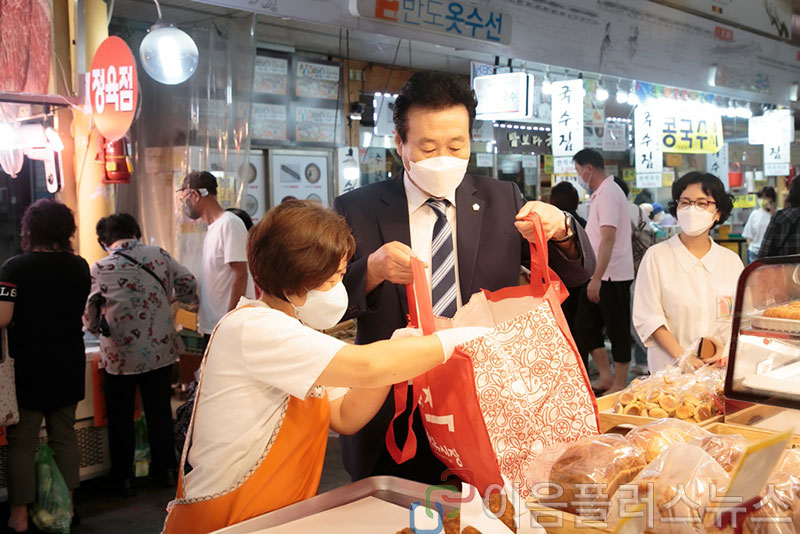 ÃÖ¼º¿î ºÎõ½ÃÀÇȸ ÀÇÀåÀº Ãß¼® ¸íÀýÀ» ¾ÕµÎ°í, ÀüÅë½ÃÀå ÀÌ¿ë Ȱ¼ºÈ¸¦ À§ÇØ »ç¹«±¹ Á÷¿øµé°ú ÇÔ²² ºÎõÀÚÀ¯½ÃÀå¿¡¼ À庸±â Çà»ç¸¦ ÆîÃÆ´Ù.