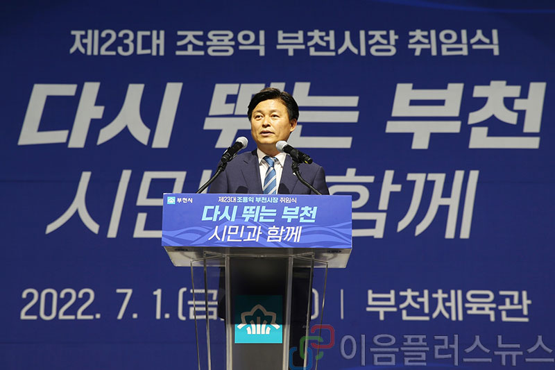 Á¶¿ëÀÍ ºÎõ½ÃÀåÀÌ ÃëÀÓ Ã¹³¯ Àú³á 7½Ã¿¡ ¿­¸° 'Åð±Ù±æ ÃëÀÓ½Ä'¿¡¼­ ÃëÀӻ縦 Çϰí ÀÖ´Ù. <»çÁø=ºÎõ½Ã Á¦°ø>