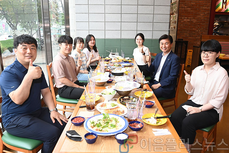 Á¶¿ëÀÍ ºÎõ½ÃÀåÀÌ MZ¼¼´ë °ø¹«¿øµé°ú ¸ß½ÃÄÚÀ½½ÄÁ¡¿¡¼­ ¿ÀÂùÀ» Áñ±â°í ÀÖ´Ù. <»çÁø=ºÎõ½Ã Á¦°ø>