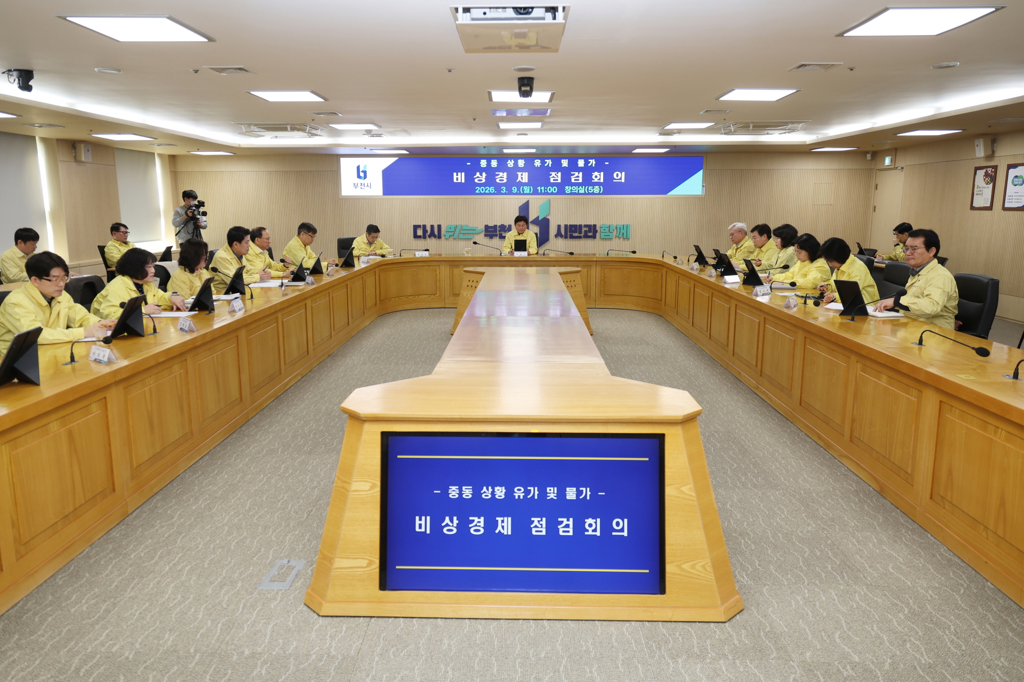 ºÎõ½Ã°¡ Áßµ¿Áö¿ª Á¤¼¼ ºÒ¾È¿¡ µû¸¥ ±¹Á¦ À¯°¡¿Í ¹°°¡ »ó½Â ºÎ´ã¿¡ ¼±Á¦ ´ëÀÀÇϱâ À§ÇØ 9ÀÏ ½Ãû âÀǽǿ¡¼­ ‘Áßµ¿ »óȲ À¯°¡ ¹× ¹°°¡ °ü·Ã ºñ»ó°æÁ¦ Á¡°ËȸÀÇ’¸¦ ¿­¾ú´Ù.