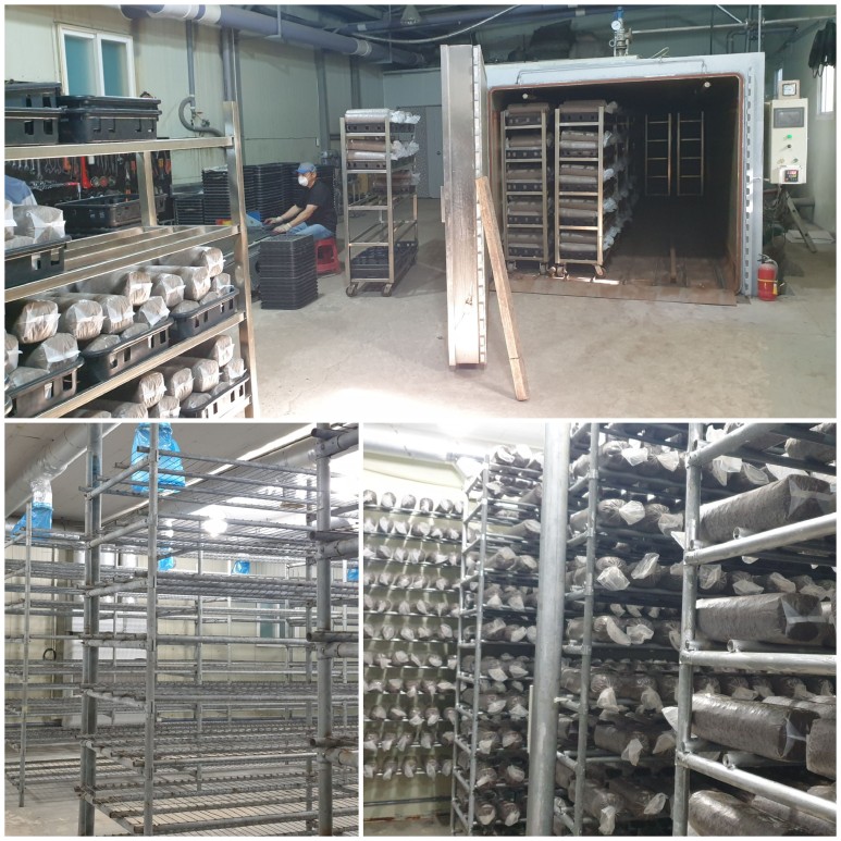 ¿ì¸®°¡ ¹æ¹®ÇÑ ¹ö¼¸¸¶·ç ½Äǰ °¡°øÀå ¿·¿¡ 100Æò ÀÌÁß ºñ´Ò ÇϿ콺¿¡ ¹èÁö 1¸¸°³°¡ ¿À¿° Çϳª¾øÀÌ 6~7´ÜÀ¸·Î °É·Á ÀÖ¾ú½À´Ï´Ù.