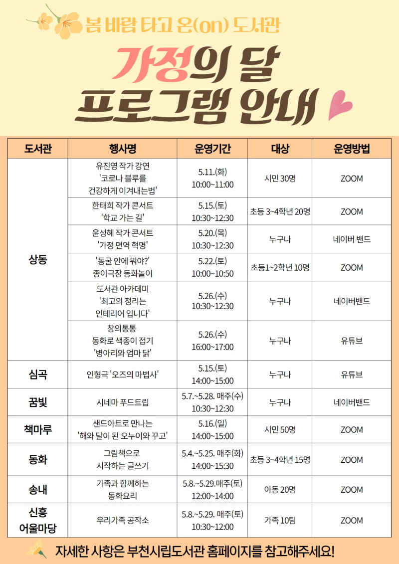 ºÎõ½Ã µµ¼°ü, 5¿ù °¡Á¤ÀÇ ´Þ ÇÁ·Î±×·¥ ¿Â¶óÀÎÀ¸·Î ½Ç½ÃºÎõ½Ã°¡ 5¿ù °¡Á¤ÀÇ ´ÞÀ» ¸ÂÀÌÇÏ¿© 5¿ù 4ÀϺÎÅÍ 5¿ù 29ÀϱîÁö ´Ùä·Î¿î µµ¼°ü ÇÁ·Î±×·¥À» ºñ´ë¸éÀ¸·Î ¿î¿µÇÑ´Ù.