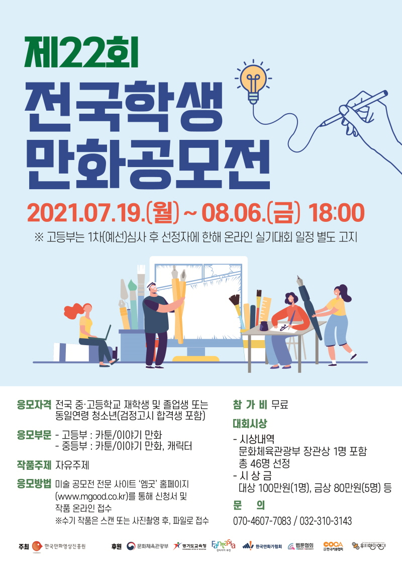 ¿Â¶óÀÎ ÀÛǰ Á¢¼ö 8¿ù 6ÀϱîÁö, Äڷγª19 È®»êÀ¸·Î ºñ´ë¸é ½Ç±â´ëȸ ÁøÇà ¿¹Á¤Çѱ¹¸¸È¿µ»óÁøÈï¿ø(¿øÀå ½ÅÁ¾Ã¶)Àº ‘Á¦22ȸ Àü±¹Çлý¸¸È°ø¸ðÀü(ÀÌÇÏ °ø¸ðÀü)’À» °³ÃÖÇϰí, ¿À´Â 8¿ù 6ÀÏ(±Ý)±îÁö ¹Ì¼ú °ø¸ðÀü Àü¹® »çÀÌÆ® ‘¿¥±Â’¿¡¼ ÀÛǰ Á¢¼ö¸¦ ÁøÇàÇÑ´Ù°í ¹àÇû´Ù.