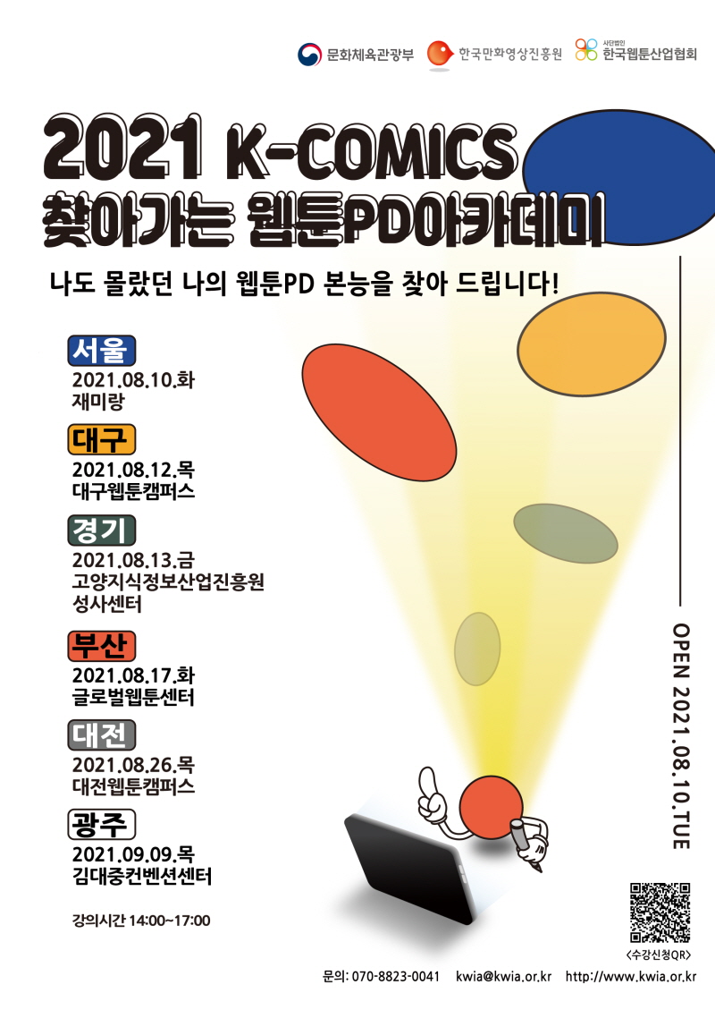 Çѱ¹¸¸È­¿µ»óÁøÈï¿ø(¿øÀå ½ÅÁ¾Ã¶)Àº 2021 K-COMICS ¾ÆÄ«µ¥¹Ì ±³À°ÀÇ ÀÏȯÀ¸·Î Àü±¹ ÃÑ 6°³ ±Ç¿ª¿¡¼­ 8¿ù 10ÀϺÎÅÍ 9¿ù 9ÀϱîÁö ¸¸È­ âÀÛÀÚ ¹× ¸¸È­»ê¾÷ Ãë¾÷ Èñ¸ÁÀÚ¸¦ ´ë»óÀ¸·Î ‘À¥Å÷PD ¾ç¼º ±³À°’À» ½Ç½ÃÇÑ´Ù°í ¹àÇû´Ù.