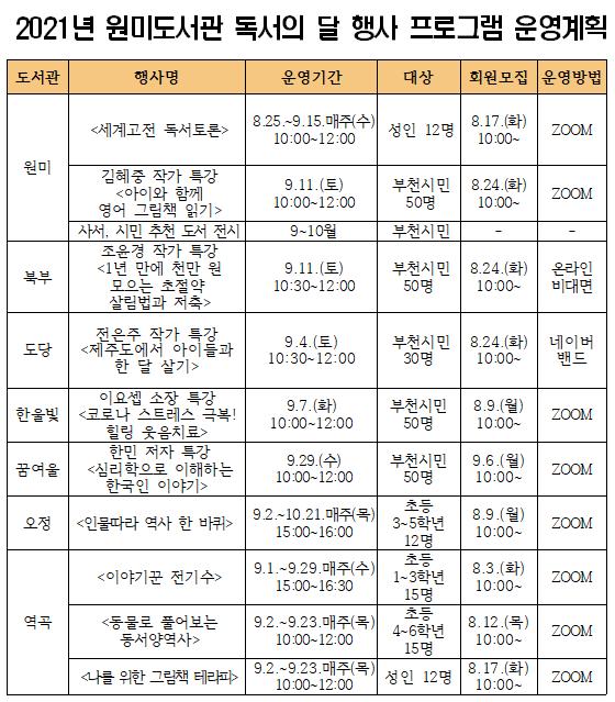 ºÎõ½Ã¸³µµ¼°üÀº 9¿ù µ¶¼ÀÇ ´ÞÀ» ¸ÂÀÌÇÏ¿© ´Ù¾çÇÑ µ¶¼¹®ÈÇÁ·Î±×·¥À» ¸¶·ÃÇß´Ù. À̹ø Çà»ç´Â Äڷγª19 È®»ê ¹æÁö¸¦ À§ÇØ ZOOM, ³×À̹ö ¹êµå µî ¿Â¶óÀÎ Ç÷§ÆûÀ» Ȱ¿ëÇÏ¿© ºñ´ë¸é ¹æ½ÄÀ¸·Î ÁøÇàµÈ´Ù.