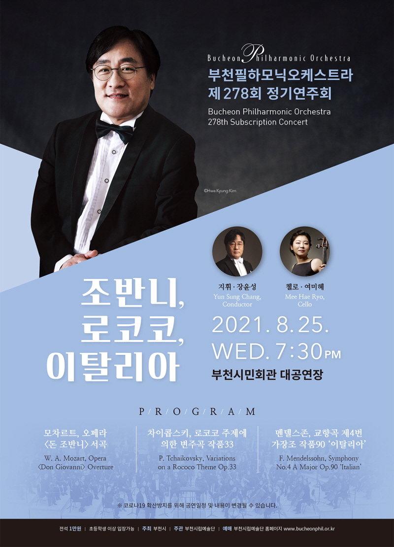 ºÎõÇÊÇϸð´Ð¿ÀÄɽºÆ®¶ó Á¦278ȸ Á¤±â¿¬ÁÖȸ <Á¶¹Ý´Ï, ·ÎÄÚÄÚ, ÀÌÅ»¸®¾Æ>´Â 2021³â 8¿ù 25ÀÏ(¼ö) ¿ÀÈÄ 7½Ã 30ºÐ ºÎõ½Ã¹Îȸ°ü ´ë°ø¿¬Àå¿¡¼ ¸¸³ªº¼ ¼ö ÀÖ´Ù. ´ã´ëÇÏ°í ¸íÄèÇÑ ÁöÈÖ·Î À½¾ÇÆÒµéÀÇ ±Í¸¦ »ç·ÎÀâ¾Æ¿Â ÀåÀ±¼º ÁöÈÖÀÚ°¡ ¼±»çÇÏ´Â ¿©¸§ÀÇ ¸¶Áö¸·À» Áñ±â±â¿¡ Á¦°ÝÀÎ À½¾Çȸ°¡ µÉ °ÍÀÌ´Ù.