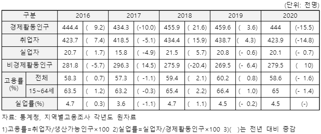 Áö¹æÀÚÄ¡ ¹Î¼±7±â¿¡ µé¾î¼¸ç ºÎõ½Ã °í¿ë·üÀº ²ÙÁØÈ÷ »ó½ÂÇÏ¿´À¸³ª Äڷγª19 ¿©ÆÄ·Î 2020³â 15¼¼ ÀÌ»ó °í¿ë·üÀÌ 58.6%·Î °¨¼ÒÇÏ´Â µî ´ëºÎºÐÀÇ ÁöÇ¥°¡ Àü³â ´ëºñ ¾ÇȵƴÙ.