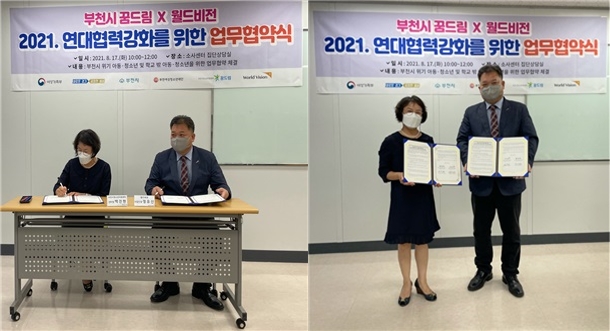Çб³ ¹Û û¼Ò³âÀÇ °Ç°ÇÑ ¼ºÀå Áö¿øÀ» À§ÇÑ À¯±âÀû °ü°è ±¸ÃàÁö³ 17ÀÏ ºÎõ¿©¼ºÃ»¼Ò³âÀç´Ü ¿î¿µ ºÎõ½ÃÇб³¹Ûû¼Ò³âÁö¿ø¼¾ÅÍ(¼¾ÅÍÀå ¹éÁøÇö)¿¡¼´Â Äڷγª19 ¹æ¿ª¼öÄ¢À» ÁؼöÇÏ¸ç ¿ùµåºñÀü °æÀÎÁö¿ªº»ºÎ¿Í ¾÷¹« Çù¾àÀ» ¸Î¾ú´Ù.