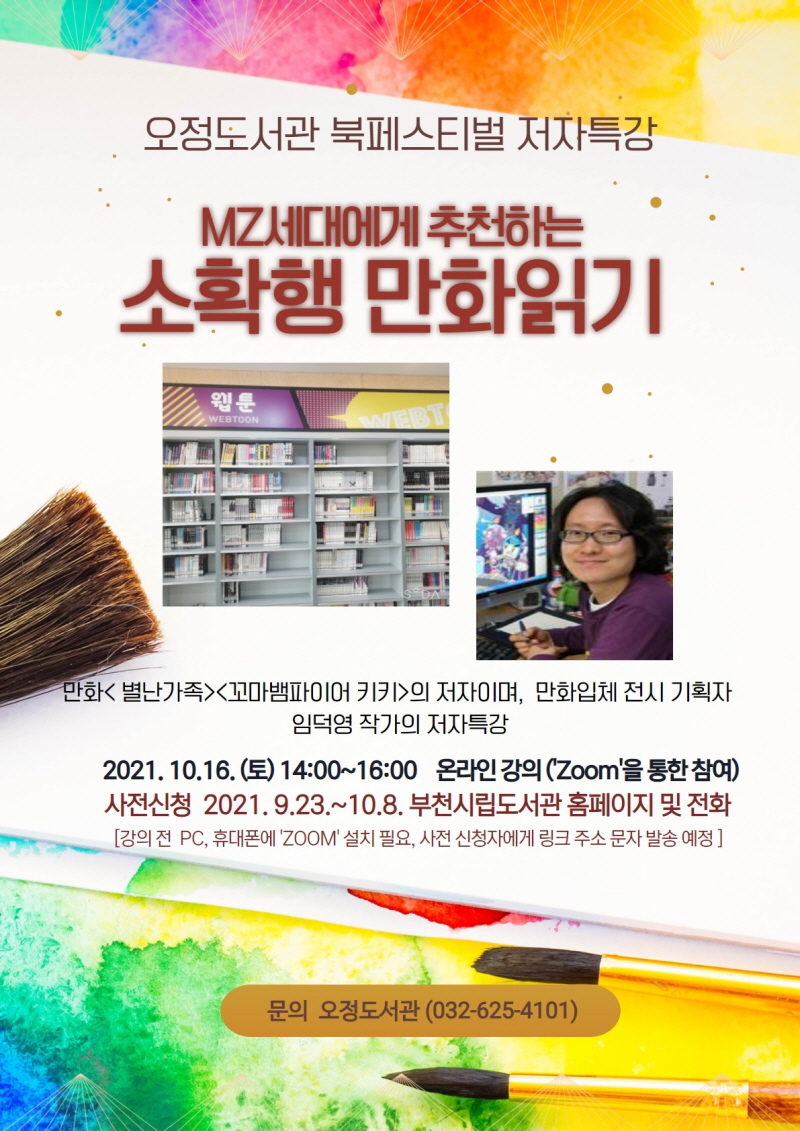 ¿À´Â 10¿ù 16ÀÏ¿¡´Â ºÎõÀÇ ¸¸ÈÀÛ°¡ ÀÓ´ö¿µ ÀúÀÚ°¡ ‘MZ¼¼´ë¿¡°Ô ÃßõÇÏ´Â ¼ÒÈ®Çà ¸¸È ÀбⒸ¦ ÁÖÁ¦·Î ´Ù¾çÇÑ µ¶¼ ¹æ¹ý°ú ºÎõ¿¡ ¼ÒÀçÇÑ ¸¸È °ü·Ã Á¤º¸½Ã¼³À» ¼Ò°³ÇÑ´Ù.