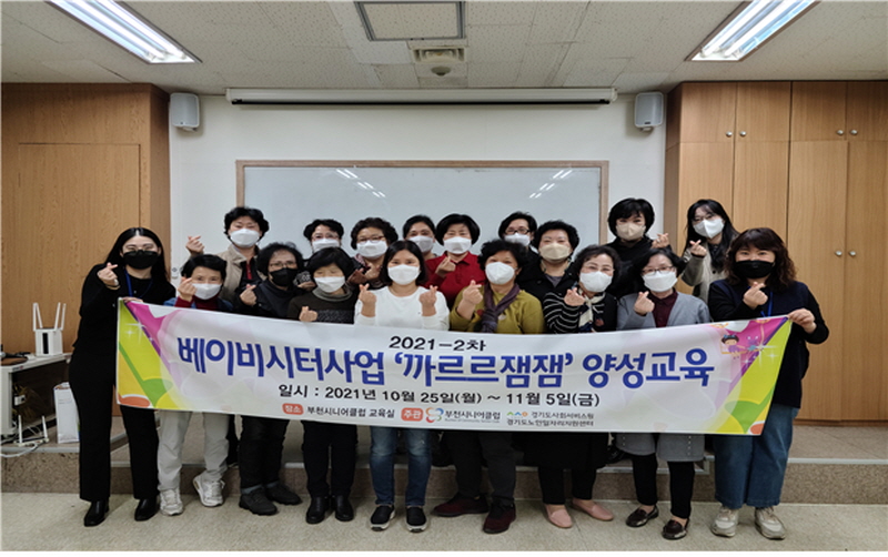 ºÎõ½Ã ³ëÀÎÀÏÀÚ¸®Àü´ã±â°ü ºÎõ½Ã´Ï¾îŬ·´(°üÀå ±ÇÄ¡¿µ)¿¡¼´Â 10¿ù 25ÀϺÎÅÍ 11¿ù 5ÀϱîÁö 2ÁÖ°£ º£À̺ñ½ÃÅÍ È°µ¿À» Èñ¸ÁÇÏ´Â 60¼¼ ÀÌ»ó ¿©¼ºÀ» ´ë»óÀ¸·Î º£À̺ñ½ÃÅÍ ¾ç¼º±³À°À» ÁøÇàÇÏ¿´´Ù.