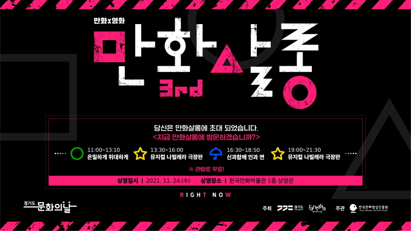 Çѱ¹¸¸È¹Ú¹°°ü(ÀÌÇÏ ¹Ú¹°°ü)ÀÌ ‘°æ±âµµ ¹®ÈÀÇ ³¯’À» ¸Â¾Æ ‘¸¸È»ì·Õ’ 3ȸ Â÷¸¦ °³ÃÖÇÑ´Ù. À̹ø Çà»ç´Â 11¿ù 24ÀÏ(¼ö) ÇÏ·ç µ¿¾È Çѱ¹¸¸È¹Ú¹°°ü 1Ãþ »ó¿µ°ü¿¡¼ ÁøÇàµÇ¸ç, ¸¸È¿øÀÛ ÄÜÅÙÃ÷·Î Á¦ÀÛµÈ ÈïÇàÀÛÀÇ ¹«·á °ü¶÷À» ÁغñÇß´Ù°í ¹àÇû´Ù.