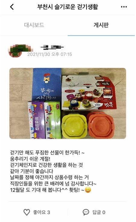 ‘½½±â·Î¿î °È±â»ýȰ’Àº ºÎõ½ÃÀÇ ¿©·¯ µÑ·¹±æ µîÀ» °È´Â °Ç°°È±â 縰Áö ÇÁ·Î±×·¥À¸·Î 11¿ù 12ÀϺÎÅÍ 21ÀϱîÁö ÇÏ·ç 6,000º¸ ÀÌ»ó, 10ÀÏ µ¿¾È 6¸¸º¸ °È±â¸¦ ´Þ¼ºÇÑ ºÎõ½Ã¹Î¿¡°Ô ¼±¹°À» Á¦°øÇß´Ù.