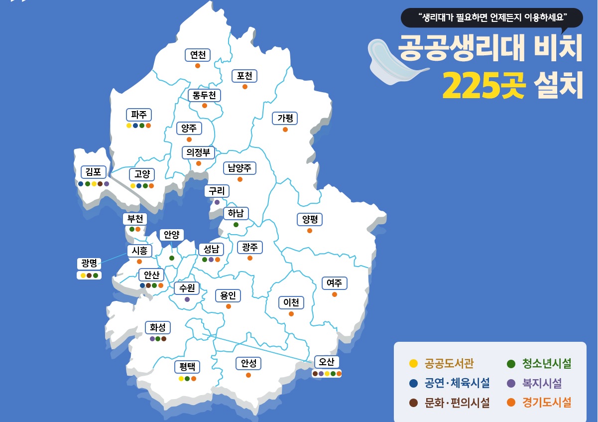 ÀÌ¿ë ¹æ¹ýÀº »ý¸®´ë°¡ ÇÊ¿äÇÑ »ç¶÷ÀÌ¸é ´©±¸³ª ºÎõ û¼Ò³â¼ö·Ã°ü, ¾È»ê »ó·Ï¼öüÀ°°ü, ÆÄÁÖ Àû¼ºµµ¼°ü µî ÇØ´ç °ø°ø½Ã¼³ ³» °ø°ø»ý¸®´ë ±â±â¸¦ ã¾Æ°¡ »ý¸®´ë¸¦ ¹ÞÀ¸¸é µÈ´Ù. °ø°ø»ý¸®´ë ±â±â´Â ÁÖ·Î °¢ ½Ã¼³ ¿©ÀÚÈÀå½Ç¿¡ ¼³Ä¡µÆÀ¸¸ç, 3°¡Áö À¯ÇüÀ¸·Î ³ª´¶´Ù. ·¹¹ö¸¸ µ¹¸®¸é ³ª¿À´Â ‘À򮂱âÇü’, ±â±â ¾Õ¿¡ ³õÀÎ Àü¿ë ÄÚÀÎÀ» ±â±â¿¡ ³ÖÀ¸¸é ³ª¿À´Â ‘ÄÚÀÎÇü’, º°µµ ±â±â ¾øÀÌ ´ã´çÀÚ¿¡°Ô ¿¬¶ôÇϸé Àü´Þ¹Þ´Â ‘´ã´çÀÚ ¿äûÇü’ÀÌ´Ù. ½Ã¼³º° ±¸Ã¼ÀûÀÎ ÁÖ¼Ò, °ø°ø»ý¸®´ë ±â±â À¯Çü, ´ã´çÀÚ ¿¬¶ôó µîÀº °æ±âµµ ´©¸®Áý¿¡¼ È®ÀÎÇÒ ¼ö ÀÖ´Ù.