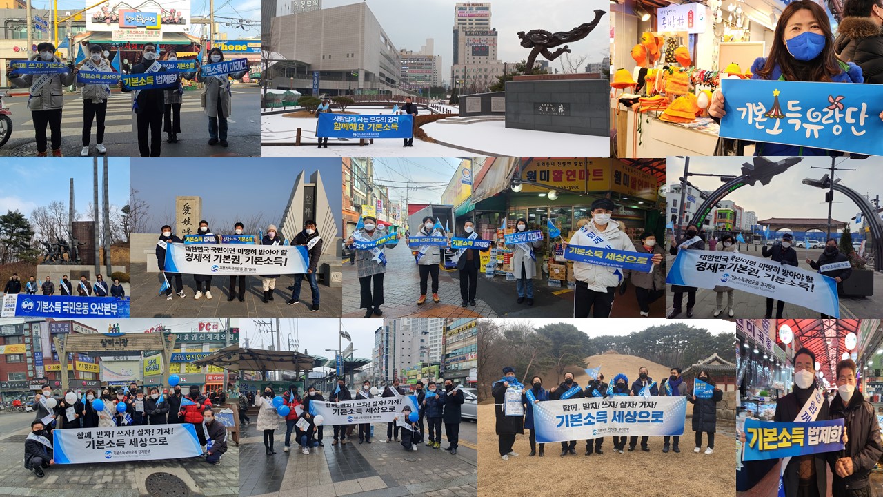 ±âº»¼Òµæ±¹¹Î¿îµ¿ ȸ¿øµéÀº À̳¯ ¿ÀÈÄ 2½ÃºÎÅÍ '´ëÇѹα¹ ±¹¹ÎÀÌ¸é ¸¶¶¥È÷ ¹Þ¾Æ¾ß ÇÒ °æÁ¦Àû ±âº»±Ç, ±âº»¼Òµæ'À̶ó´Â Çö¼ö¸·°ú ÇÔ²² 'ÇÔ²² ¾²ÀÚ! ±âº»¼Òµæ', 'ÇÔ²² ¹ÞÀÚ! ±âº»¼Òµæ', 'ÇÔ²² °¡ÀÚ! ±âº»¼Òµæ'À̶ó´Â ¼ÕÇö¼ö¸·À» µé°í Àü±¹ °¢Áö, °Å¸®¿¡¼­ µ¿½Ã´Ù¹ß È«º¸ Ä·ÆäÀÎÀ» ÁøÇàÇß´Ù.
