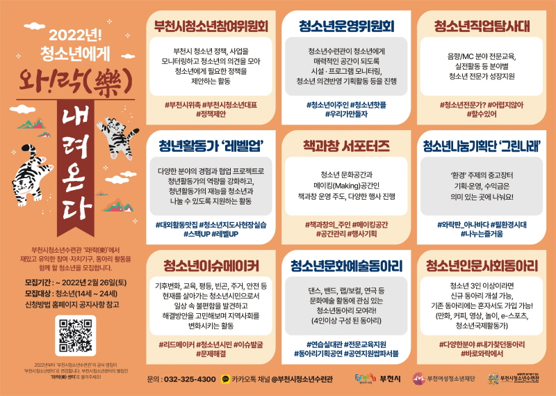 ºÎõ½Ã¿¡ Àִ û¼Ò³â¼¾ÅÍ 6°³¼Ò(ºÎõ½Ã·»ê¿ï¸²·¼Ò»ç·°í¸®¿ï·¼Û³»·ºÎõ¿©¼ºÃ»¼Ò³â¼¾ÅÍ) ¿¡¼­ 2022³â û¼Ò³â ÀÚÄ¡±â±¸ Âü°¡ û¼Ò³âÀ» ¸ðÁýÇÑ´Ù.