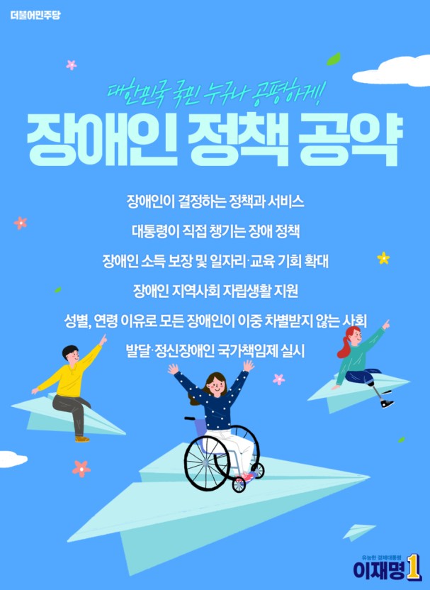 ´õºÒ¾î¹ÎÁÖ´ç ¼±´ëÀ§ Àü±¹Àå¾ÖÀÎÀ§¿øÈ¸(»óÀÓÀ§¿øÀå: À±Èñ½Ä), Æ÷¿ëº¹Áö±¹°¡À§¿øÈ¸(»óÀÓÀ§¿øÀå: ³²Àμø ±¹È¸ÀÇ¿ø), ÇÔ²²ÇÏ´ÂÀå¾ÖÀÎÀ§¿øÈ¸(»óÀÓÀ§¿øÀå: ÃÖÇý¿µ ±¹È¸ÀÇ¿ø)¿Í Á¤Ã¥º»ºÎ(º»ºÎÀå: À±ÈÄ´ö ±¹È¸ÀÇ¿ø)°¡ ¹ßÇ¥ÇÑ ÀÌÀç¸í Èĺ¸ÀÇ ‘Àå¾ÖÀÎ’ °ø¾à¿¡´Â, ÀÌÀç¸í Á¤ºÎÀÇ Àå¾ÖÀÎ Á¤Ã¥ 5´ë °ø¾àÀÌ Á¦½ÃµÆ´Ù. ¡âÀå¾ÖÀÎ ´ç»çÀÚ Á᫐ Á¤Ã¥·¼ºñ½º °áÁ¤Ã¼°è ±¸Ãà ¡âÀå¾ÖÀÎ ¼Òµæº¸Àå°ú ÀÏÀÚ¸®·±³À°±âȸ È®´ë ¡âÀå¾ÖÀÎ Áö¿ª»çȸ ÀÚ¸³ »ýȰ Áö¿ø ¡â¿©¼º, °í·ÉÀå¾ÖÀÎ µî ´ÙÁß Â÷º° Àå¾ÖÀÎ Áö¿ø ¡â¹ß´Þ·Á¤½ÅÀå¾ÖÀÎ ±¹°¡Ã¥ÀÓÁ¦ ½Ç½Ã µîÀÌ´Ù.
