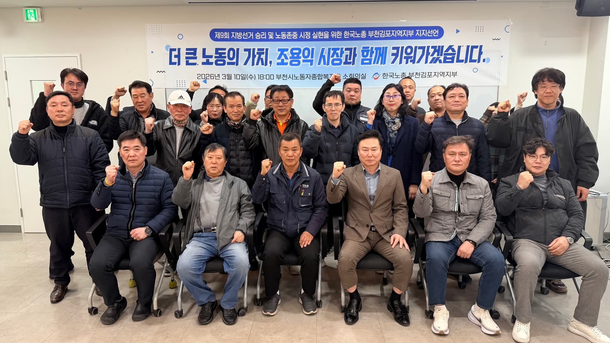 부천노총은 지난 3월 10일 결의대회를 통해 "한국노총 부천김포지역지부는 저출산과 고령화로 인한 노동력 감소, 청년 유출이라는 엄중한 사회경제적 위기를 극복하기 위해 다시한번 조용익 부천시장과 함께 신뢰의 손을 잡았다"고 밝혔다.