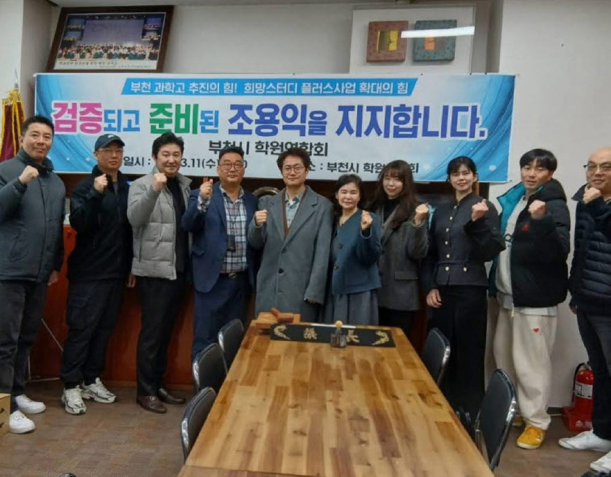 이어서 조용익 부천시장을 지지한다고 밝힌 단체는 부천시 학원 연합회의 지지선언이다. 부천시학원연합회는 우리 지역 아이들의 교육 환경 개선과 부천시 교육 역량의 질적 도약을 위해, 조용익 현 부천시장의 교육 정책 기조를 적극 지지함을 대내외에 천명한다고 선언했다.